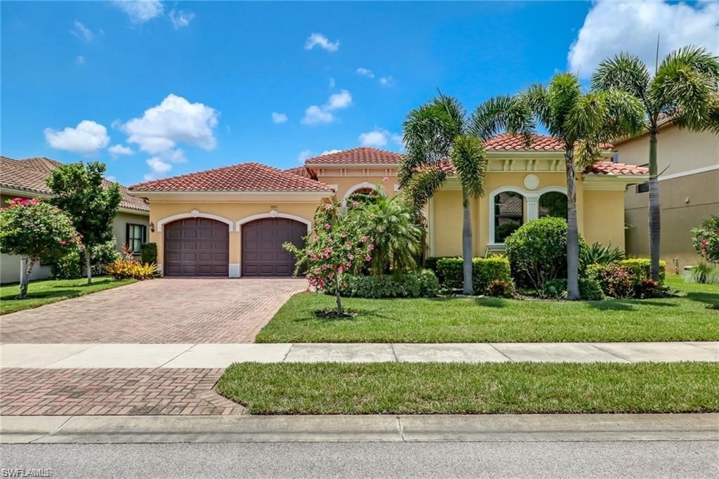 This charming 2 bedroom+den, 2.5 bath, 2.5 car garage pool home has a marvelous location on the 6th fairway in prestigious Olde Cypress. The open floor plan in this Arthur Rutenberg custom built home is perfect for both impromptu gatherings or more formal entertaining. Well-designed great room floorplan combines an open, spacious feeling with privacy via the split bedrooms. Home features mirrored dining area and rich wood floors throughout the great room. Solar efficient swimming pool heater. Custom floorplan upgrades include expansion of the master bedroom to create a seating area overlooking golf course and expansion of the garage to facilitate convenient golf cart parking with side entry garage door. Don't overlook this rare opportunity to purchase in Olde Cypress for under $500,000! Olde Cypress is one of Naples most sought-after gated communities offering golf (membership optional), tennis, fitness and newly renovated clubhouse with dining options and an active social scene. All schools in this district have an "A" rating. Just minutes to shopping, world class beaches and RSW airport.